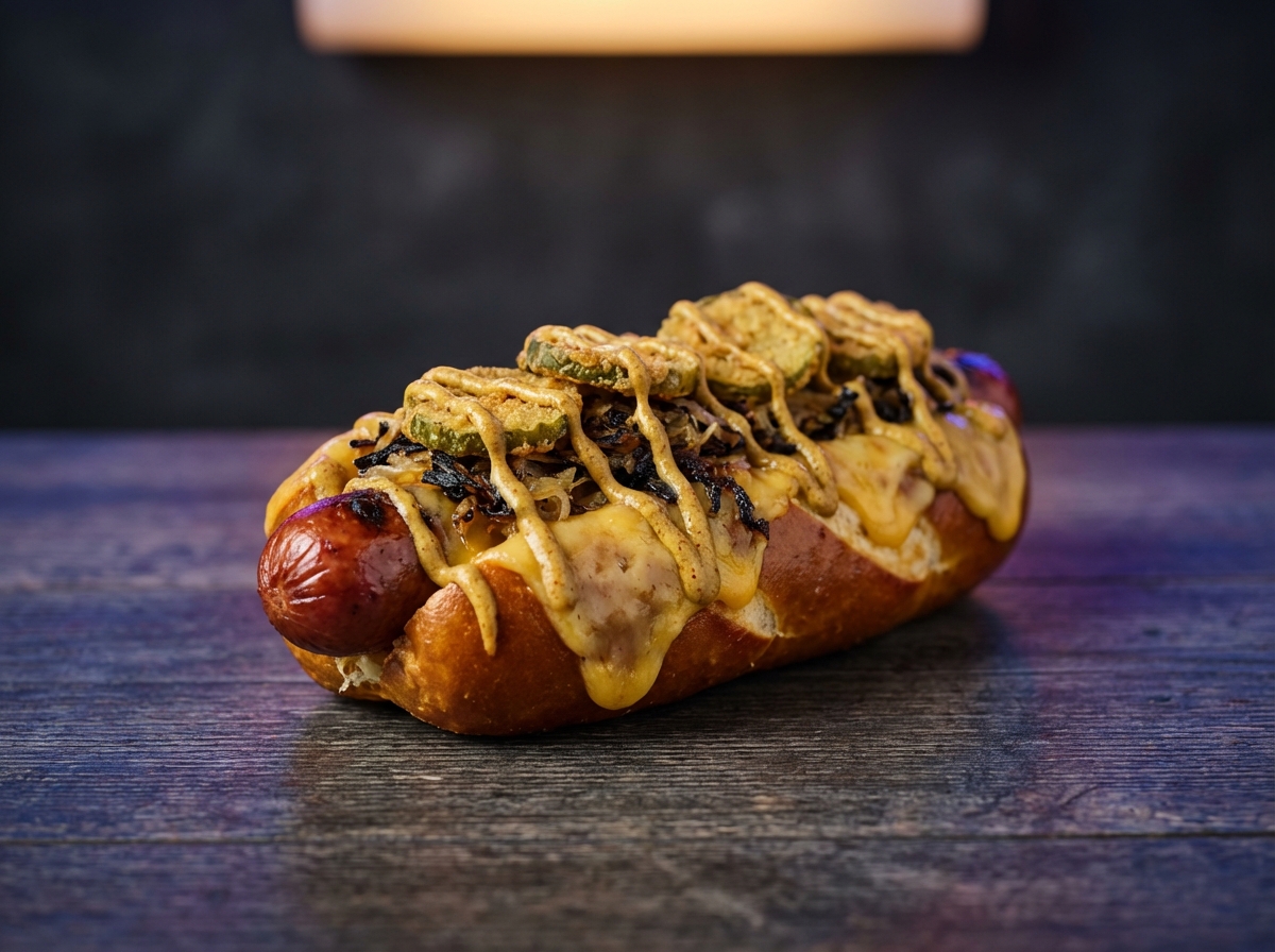 Chef-driven dogs, killer pretzels, house pickles & easy drinks upstairs — with a darker, sharper cocktail cellar downstairs for another round.
